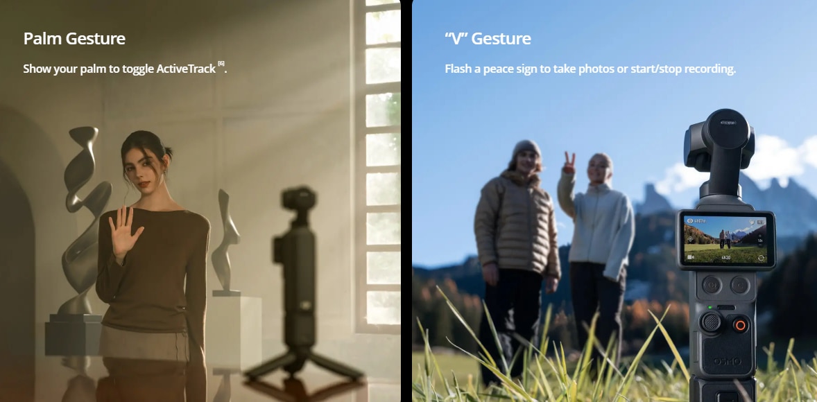 Controlul prin gesturi va ofera controlul deplin. De asemenea, DJI Pocket 4 poate fi activat rapid pentru fotografiere sau filmare.